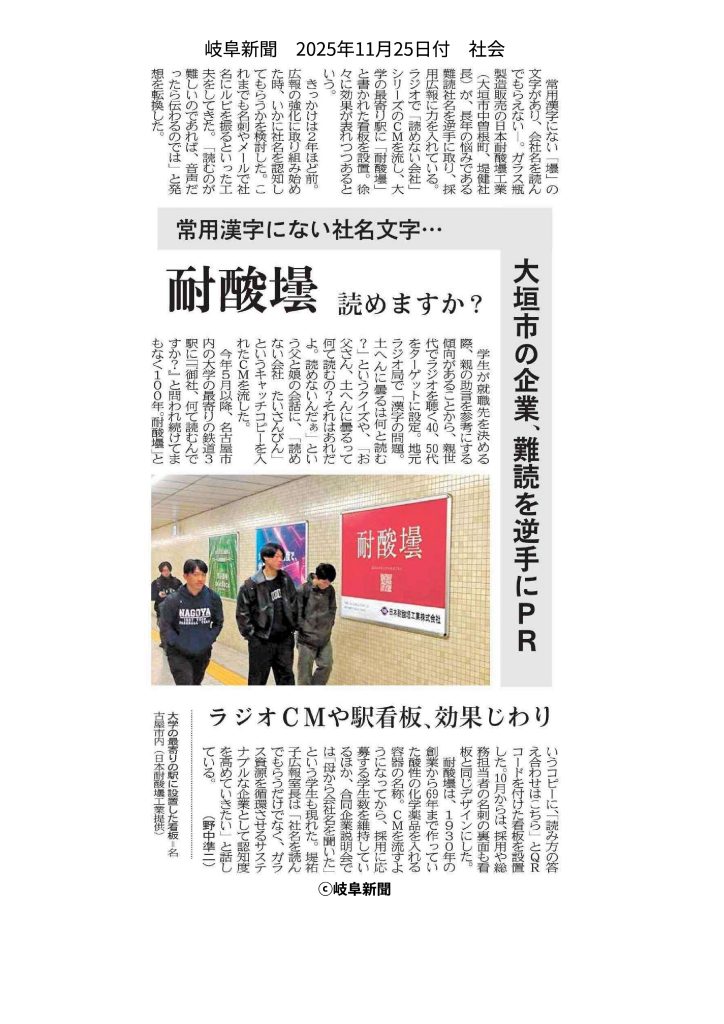 click▶社名には常用漢字外の文字…難読を逆手に大垣市の企業が採用でPR:朝日新聞